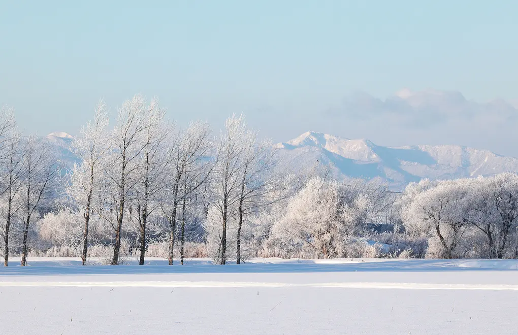 函館七飯スノーパークの山頂より、スノーシューで歩き始めます。最高の雪質、目標は、霧氷をまとう大樹です。レベルに合わせて、コース選択はお好みに。インストラクターが山頂で待機しております。